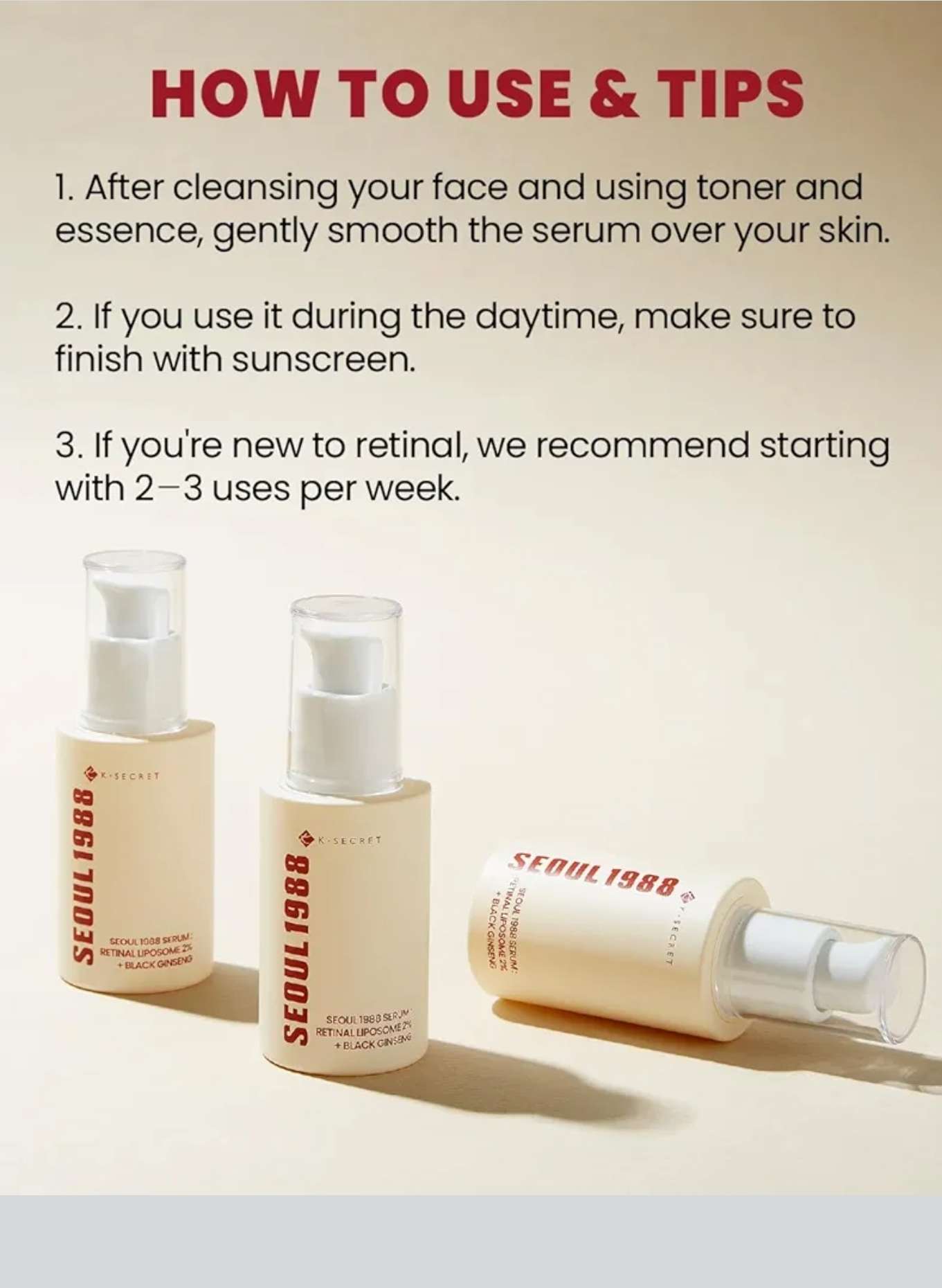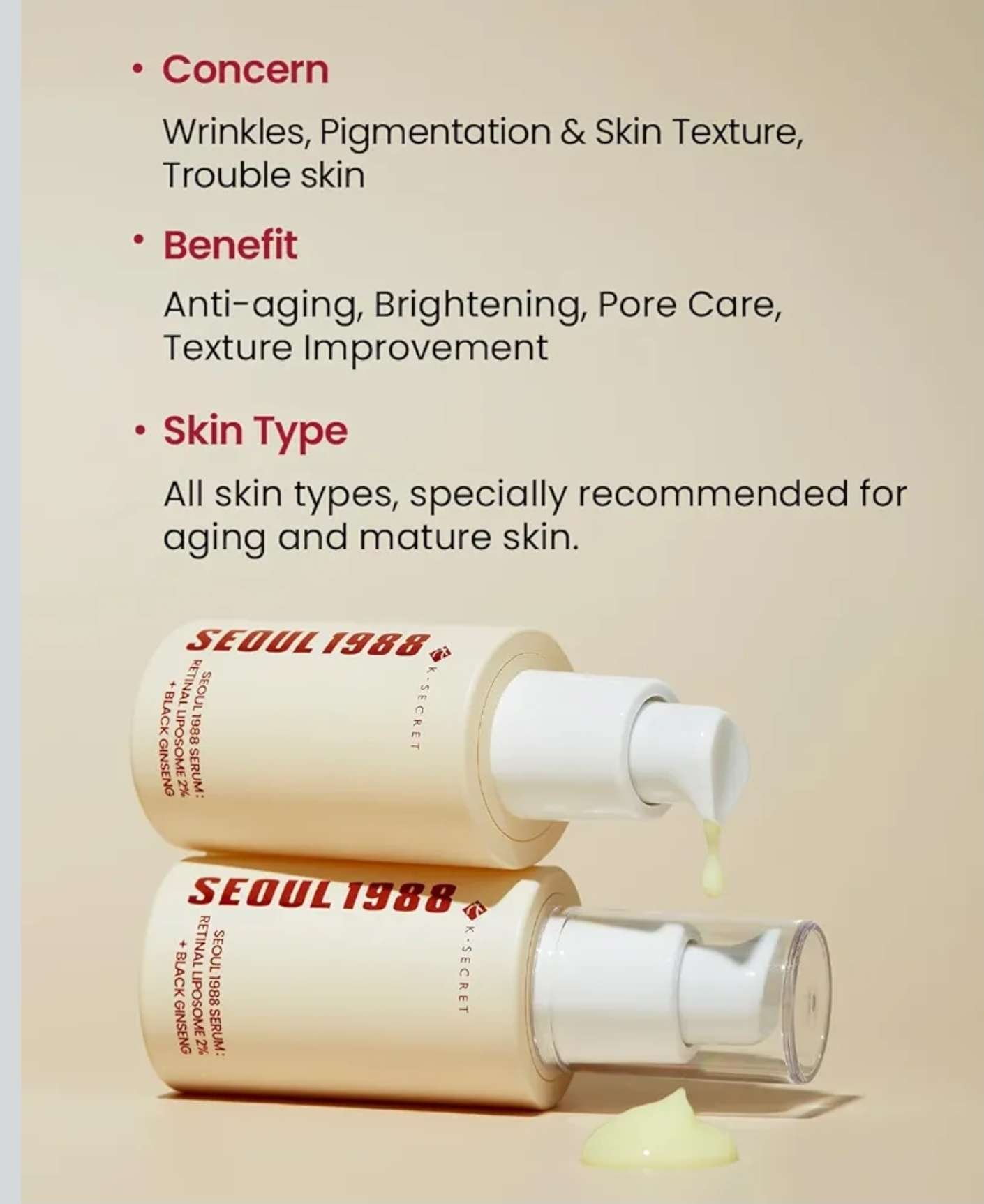 سرم جوانساز رتینال لیپوزومی 2% و جنسینگ سیاه سئول 1988، محصولی جدید و پرطرفدار در عرصه جوانسازی پوست است که با تمرکز بر ترکیبات فعال، راهکاری جامع برای بازگرداندن طراوت و جوانی به پوست شما ارائه میدهد. این سرم با فرمولاسیون منحصر به فرد خود، دو ستاره درخشان دنیای مراقبت از پوست، یعنی رتینال (رتینالدهید) و جنسینگ سیاه را در خود جای داده است.